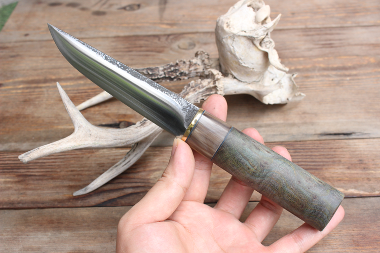 Cán dao thường được làm bằng gỗ Bạch Dương Xoăn (Curly Birch), cán dao thường làm hình trứng rất đơn giản không cầu kỳ như những loại dao khác.