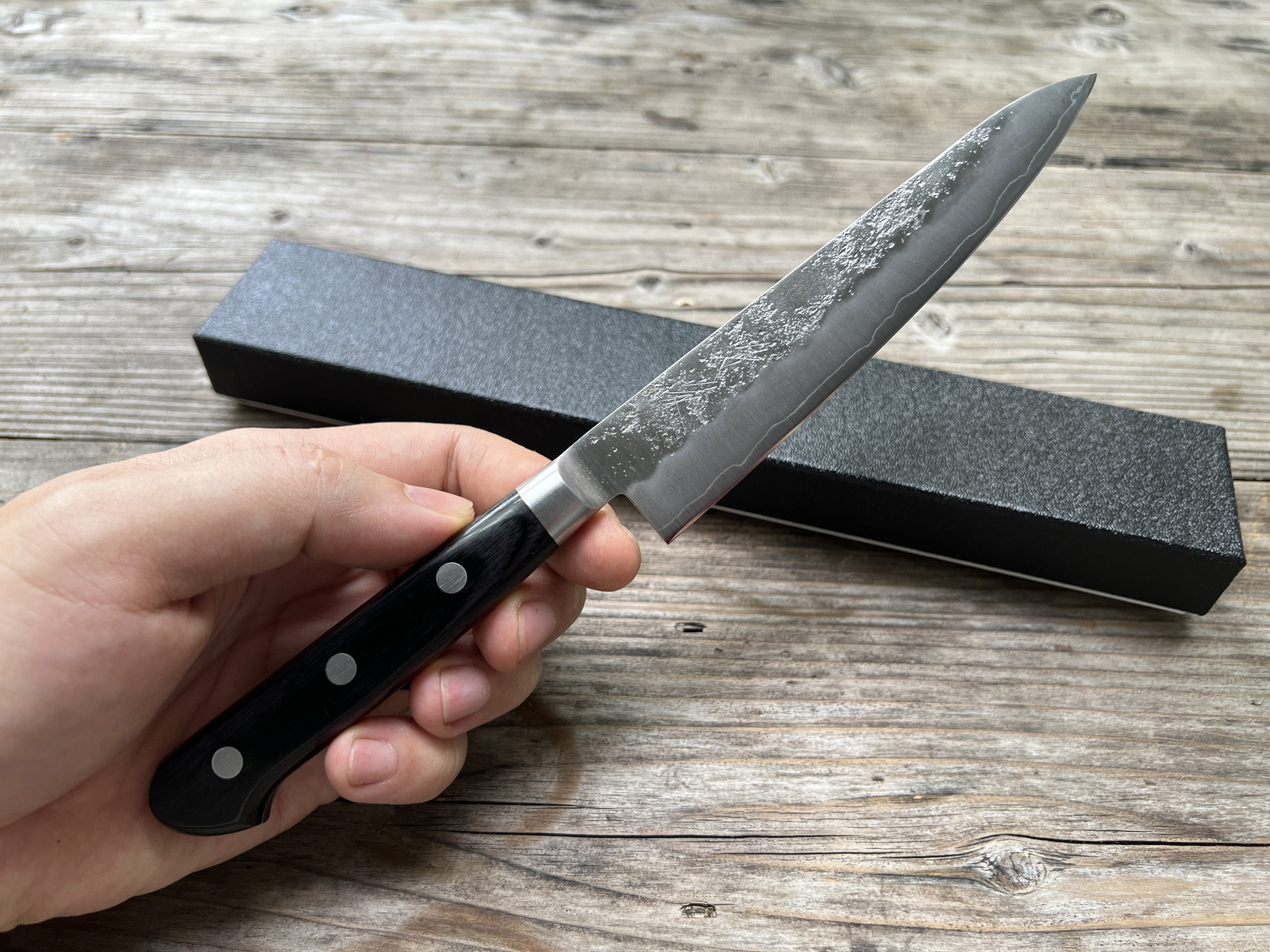 Dao được rèn theo phong cách Nashiji với lõi thép giấy bạc số 3 (Ginsan, Sliver 3).