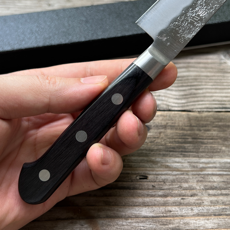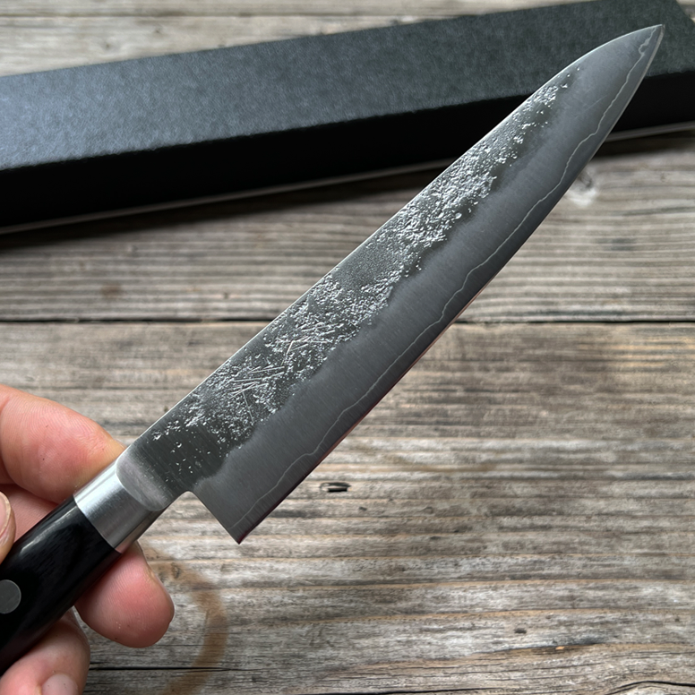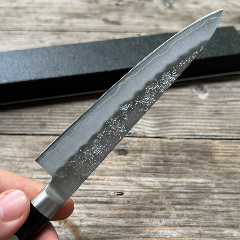 Dao được rèn theo phong cách Nashiji với lõi thép giấy bạc số 3 (Ginsan, Sliver 3).