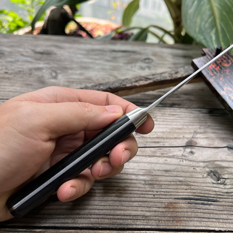 * Lưu ý khi sử dụng : dao dùng cắt rau củ quả, thịt, cá không được dùng chặt đồ cứng hoặc đồ đông lạnh. Dao được rèn thủ công nên kích thước có thể không giống nhau hoàn toàn.