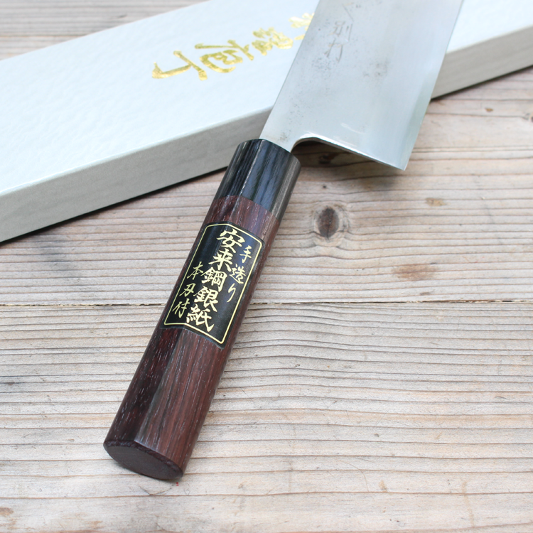 Dao được rèn theo phong cách Nashiji với lõi thép giấy bạc số 3 (Ginsan, Sliver 3).