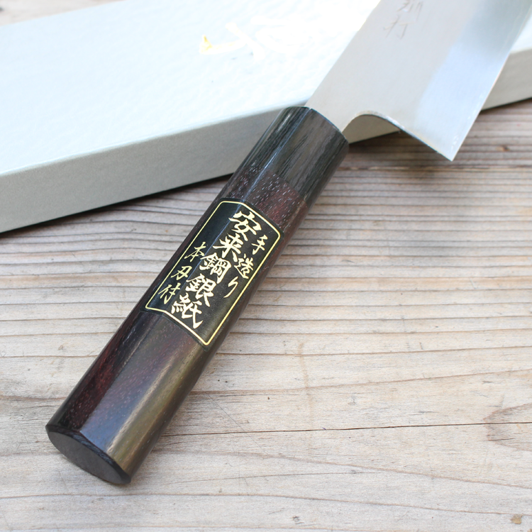 Dao được rèn theo phong cách Nashiji với lõi thép giấy bạc số 3 (Ginsan, Silver 3).