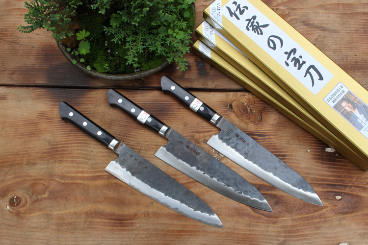 Denka là phiên bản cao cấp nhất của hãng (sử dụng lõi thép Aogami Super và ốp chống gỉ 2 bên), bằng việc cải tiến điểm nghỉ tay (Finger Rest) thì dao của hãng luôn có một nét đặc trưng riêng khó nhầm lẫn và mang lại cảm giác sử dụng rất thoải mái trong thời gian dài mà không bị đau tay.