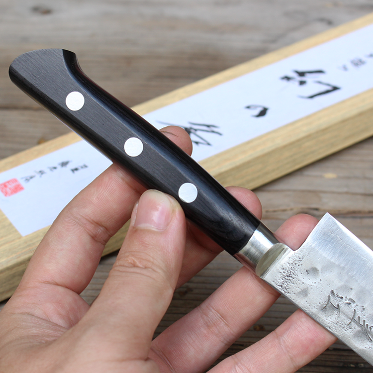 Maboroshi là phiên bản cao cấp của hãng sử dụng lõi thép Shirogami số 1 cực kỳ sắc bén và dễ mài, dao được rèn với ốp không gỉ nên rất dể bảo quản trong quá trính sử dụng. Do petty là dòng dao nhỏ nên hãng không áp dụng Finger Rest vào phiên bản này.