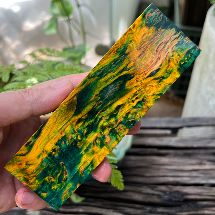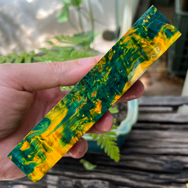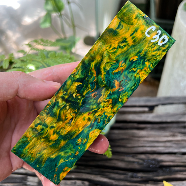 Hóa chất ổn định được sử dụng là nhựa gốc (Cactus Juice), các loại thuốc nhuộm khác nhau có thể được thêm vào để tăng thêm màu sắc cho gỗ. Có rất nhiều loại gỗ được dùng để xử lý ổn định nhưng phổ biến nhất là gỗ Phong (Maple), Tần Bì (Ash), Bạch Dương (Birch).