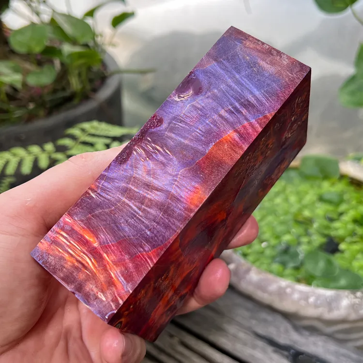 Gỗ Ổn Định (Stabilized Wood) có khả chống được ẩm mốc cũng như ít bị cong vênh, nứt rất thích hợp để làm cán dao, vỏ bút, máy vape, đồ thủ công.....