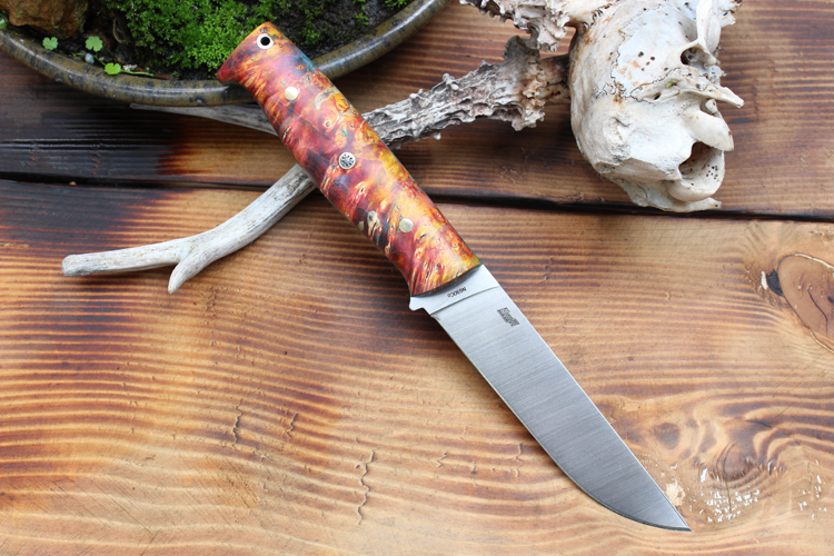 Một lưỡi dao đã được hoàn thiện cán bằng gỗ ổn định.